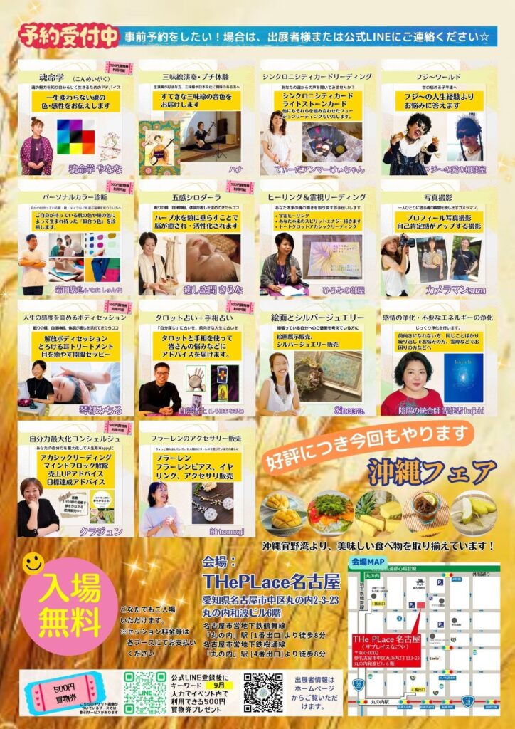 リラクゼーション、占い·鑑定、個性心理学、ストレス測定、プロフィール写真撮影、アートワークショップ、物販…