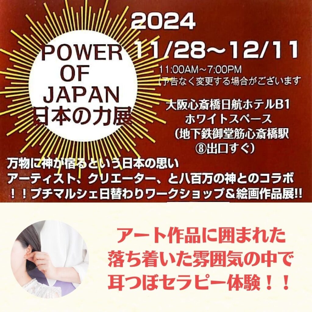 11月28日(木)~12月11日(水) アート展POWER OF JAPAN内 耳つぼセラピーブース出店(心斎橋)