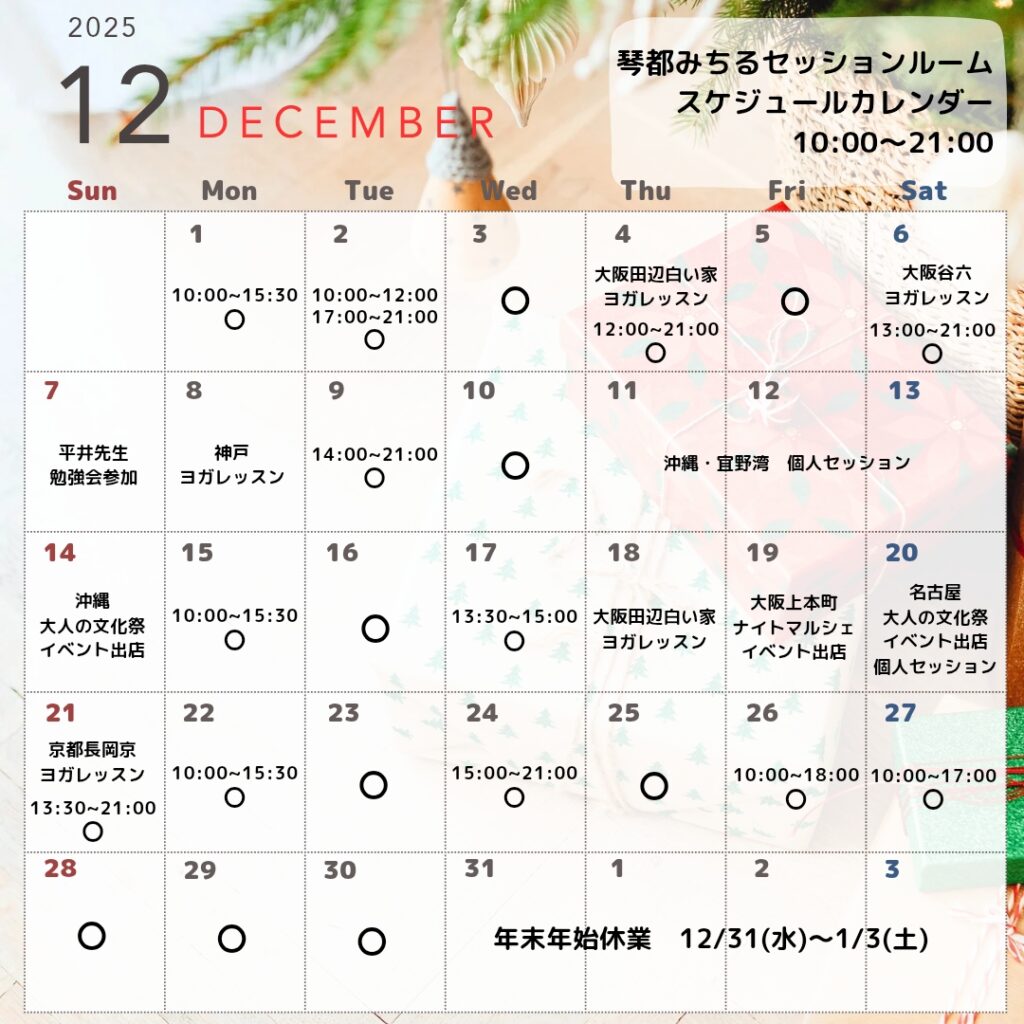 12月琴都みちるセッションルームスケジュール・営業カレンダーです。