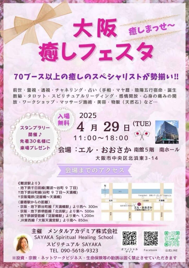 全国各地を飛び回る人気スピリチュアルヒーラーSAYAKAさん主催の「大阪癒しフェスタ」