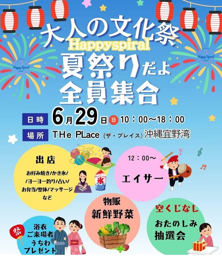 6月29日(日)大人の文化祭マルシェ 夢を叶えるマルシェ ハッピースパイラルin 沖縄宜野湾