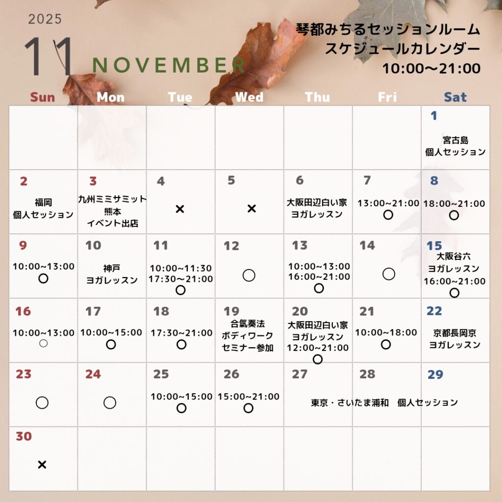 11月琴都みちるセッションルームスケジュール・営業カレンダーです。