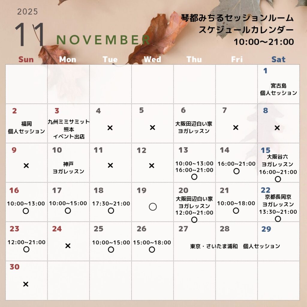 11月琴都みちるセッションルームスケジュール・営業カレンダーです。