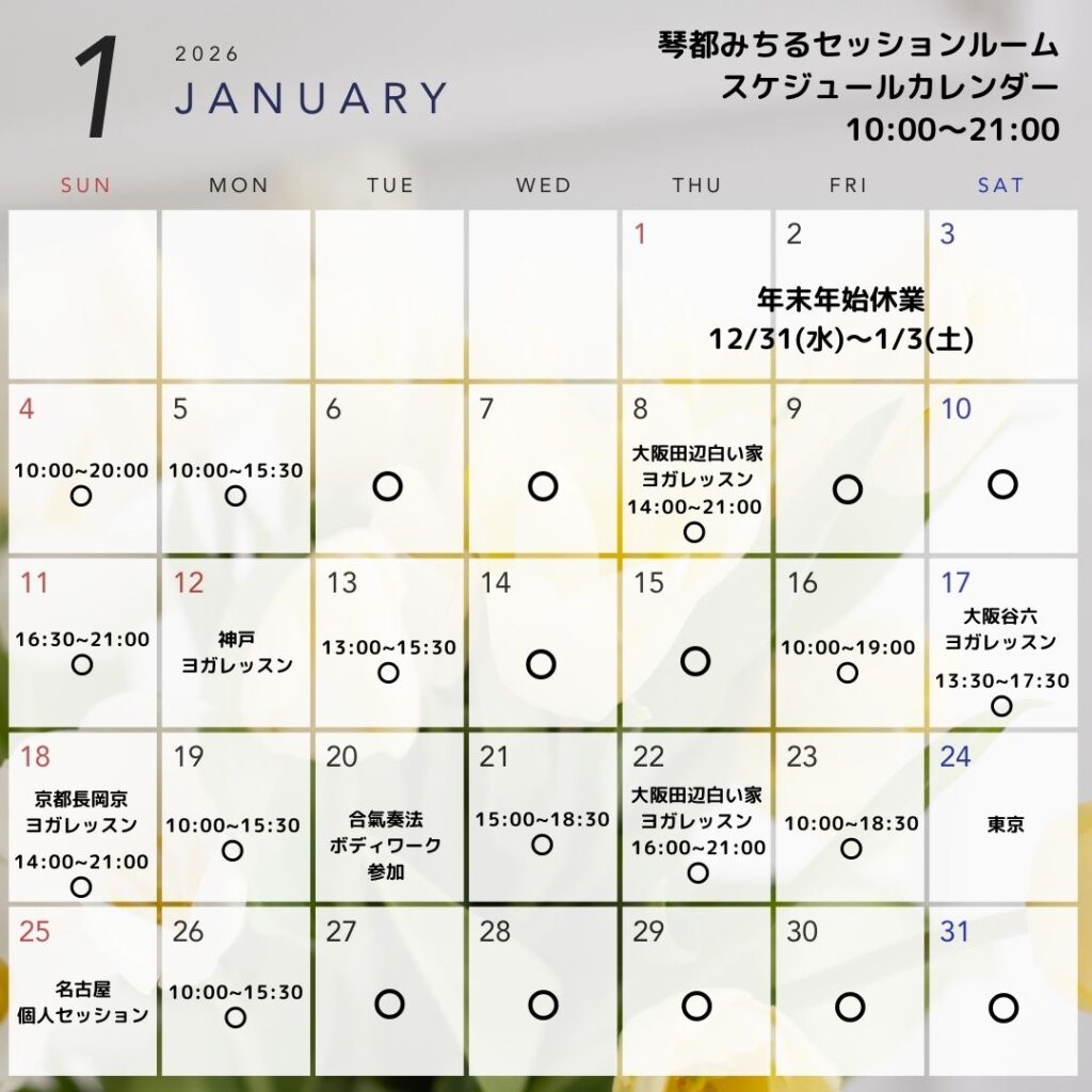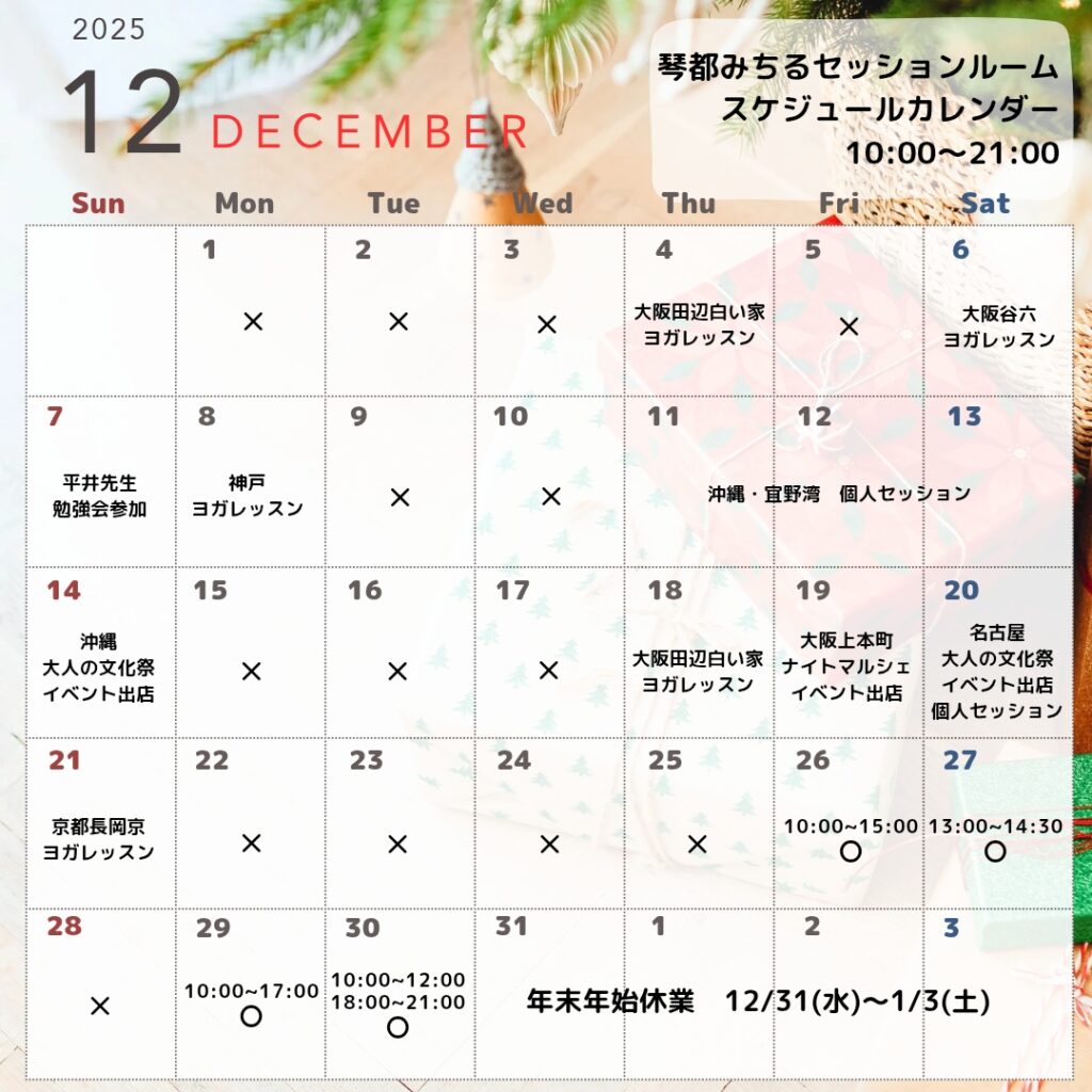 12月・1月琴都みちるセッションルームスケジュール・営業カレンダーです。2月以降のご予約も承っております。