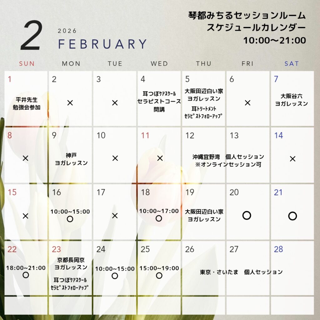 2月琴都みちるセッションルームスケジュール・営業カレンダーです。3月以降のご予約も承っております。