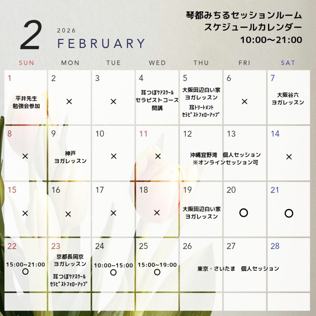 2月琴都みちるセッションルームスケジュール・営業カレンダーです。3月以降のご予約も承っております。